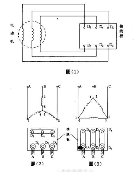 圖(3)三角型接線圖 三角形連接用在大功率或/和高壓電機上,主要便于接星-三角啟動